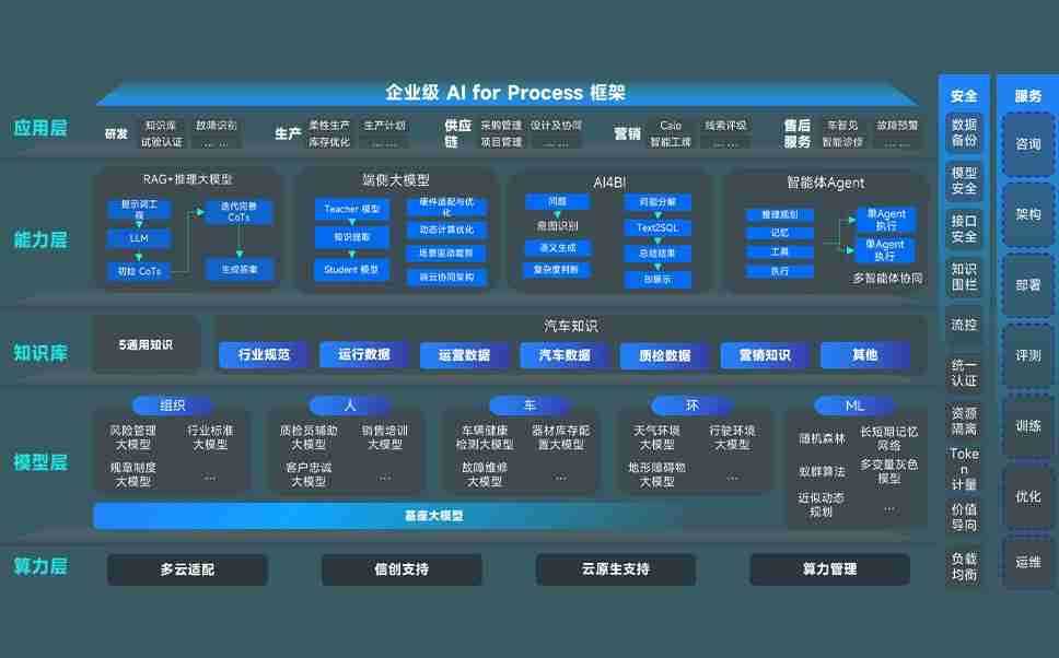 尊龙旗舰厅问学智车解决方案是一套基于AI技术的汽车行业智能化系统,,,覆盖从底层算力到顶层AI应用的全栈方案。。。。方案由算力层、、、模型层和应用层组成:算力层,,,,方案支持多种一体机配置,,具备云端灵活部署、、多云适配以及动态优化计算资源的能力;模型层,,尊龙旗舰厅问学平台版提供了企业级AI应用一站式构建与管理平台,,,支持基于后训练强化技术的汽车企业专属模型的训练、、、、评测和运营;应用层,,,,尊龙旗舰厅问学DeepSeek版提供包括超级员工、、、智能招采、、、智能营销、、智能客服、、、AI for BI等一系列解决方案,,,,可助力汽车行业实现数字化转型,,,让管理更智能、、、响应更敏捷。。。